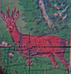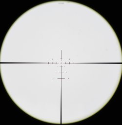 Nous aimons utiliser le réticule LA E3 à la chasse. Il permet d'effectuer une compensation de trajectoire de la balle (BDC ; Bullet Drop Compensation). Il est toutefois surprenant que les repères du réticule soient reproduits en MOA (minute d'angle). Pour une lunette de visée destinée au marché européen et avec un réglage de réticule de 1 cm/100 m, on s'attendait plutôt à un réticule doté de repères métriques. Les repères verticaux sont fixés pour des distances de 200, 300 et 400 yards. Ils sont situés à 1,49-4,31-7,8 MOA sous la croix centrale. La fonction BDC convient par exemple à un projectile de calibre .30 d'un poids de 150 grains et d'une vitesse d'environ 860 m/s. Il va de soi que la position du point d'impact doit toujours être contrôlée dans la pratique. Comme le réticule est monté dans le deuxième plan focal de l'image, les ajustements peuvent toujours se faire au moyen du facteur d'agrandissement. L'éclairage du réticule se limite à la fine croix centrale. Les niveaux d'éclairage les plus bas ne sont destinés qu'à de mauvaises conditions de luminosité. À partir du niveau 7, la luminosité est adaptée à une utilisation de jour.