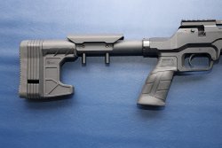 Comme tant d'autres fabricants de carabines, le fabricant tchèque CZ coopère avec les spécialistes canadiens de Modular Driven Technologies (MDT) pour ce modèle de match de petit calibre. Le châssis monobloc de la série LSS est en aluminium 6061-T6 et a été adapté au système CZ. La crosse arrière est réglable en longueur grâce à quatre pièces intermédiaires livrées avec l'arme. À la livraison, toutes les pièces intermédiaires sont montées, ce qui donne une longueur de crosse (LOP ; Length of Pull) de 335 à 360 mm entre la plaque de couche en caoutchouc et la queue de détente. La crosse est équipée d'un support de joue en polymère, dont la hauteur peut être réglée sur environ 25 mm en desserrant deux vis. Une crosse de pistolet AR-15 maison, volumineuse et cintrée, est montée sur le support en alliage léger.