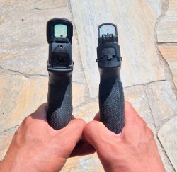 Les viseurs réflexes offrent une solution au dilemme décrit ci-dessus. Il s'agit de petites optiques de visée qui peuvent être montées sur une arme de poing. Ils n'ont pas de grossissement et un point de mire lumineux est reflété dans l'optique, ce qui permet de viser la cible. Leur avantage vient du fait que l'on tire avec les deux yeux ouverts, on doit se focaliser uniquement sur la cible. En bref, le tireur regarde sa cible avec les deux yeux ouverts et fait la mise au point sur celle-ci. Il place ensuite le point rouge dans son champ de vision et le place au-dessus de la cible. Comme les visées réflexes sont sans parallaxe, il importe peu que le point lumineux apparaisse ou non au centre de l'optique. Ce type de visée offre des avantages considérables par rapport à la visée ouverte et représente en fin de compte la manière dont l'homme vise naturellement : Il a la cible en vue. Nous connaissons tous cela en lançant une boule de neige ou un javelot, nous regardons la cible et non l'objet que nous lançons. De plus, les viseurs réflexes offrent des avantages considérables en cas de baisse de l'acuité visuelle.