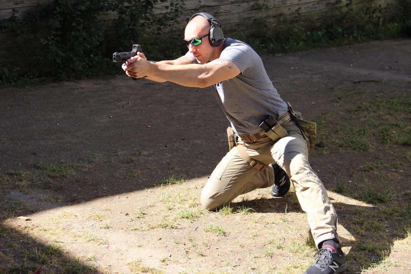 Le respect de ces règles garantit une utilisation sûre de l'arme. A cela s'ajoute l'utilisation d'un équipement sûr. Dans le domaine du tir au pistolet, il s'agit tout d'abord d'un holster sûr et de bonne qualité qui recouvre la détente. Les variantes modernes en Kydex sont préférables aux étuis classiques en cuir. De plus, les vêtements doivent être choisis en conséquence. Les poches ouvertes au niveau des hanches sur les vestes, les cordons ou les fermetures éclair lâches et tout autre élément dans lequel l'arme peut s'emmêler doivent être évités. Les bases d'un bon tir en toute sécurité sont une position stable, une bonne prise en main, une visée correcte et une détente propre. Ces quatre éléments qui constituent la base de tout tir sont particulièrement importants lors du tir au pistolet.