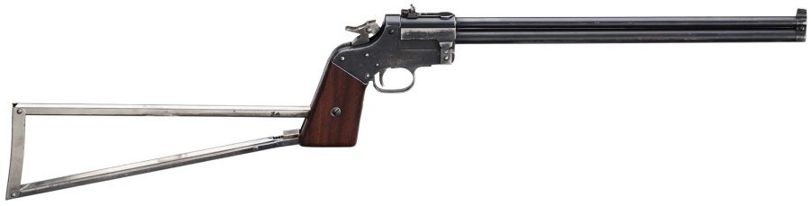 Nous restons en Amérique avec le lot 12681, qui pourrait être considéré comme le précurseur de nombreux fusils de "survie" encore fabriqués aujourd'hui. Il s'agit du " Game Getter G un", un pistolet à deux canons combinés de calibre .410 et .22 l.r., avec une crosse rabattable et un étui pour le porter. Fabriqué par Marble Arms & Mfg. Co. à Gladstone, Michigan, en 1921. Le pistolet a un double canon de 15 pouces et a été conçu par Webster L. Marble (1854-1930), un explorateur et pionnier de la survie qui a commencé la production en 1908 et a commercialisé le pistolet comme arme de survie pour ceux qui s'aventuraient dans les régions sauvages d'Amérique du Nord, qui étaient encore largement inhospitalières et inexplorées à cette époque. Plus de cent ans après, Marble Arms propose toujours le "Game getter gun", mais l'arme mise en vente chez Hermann Historica date des premières années de production et est donc certainement plus attrayante pour le collectionneur. Le prix de départ de ce fusil à canon basculant inhabituel est de 600 euros.