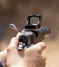 Doté d'une fenêtre de 28 mm de large sur 24 mm de haut et d'un point de 4 MOA, le viseur réflex RXM-300 a été conçu en collaboration avec le champion du monde de tir, KC Eusebio, "il souhaitait un viseur de pistolet à grand format conçu pour résister à des dizaines de milliers de tirs". Il est donc également prêt pour la compétition.