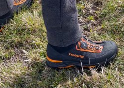 Il rapido Boa System permette una tenuta stabile e sempre regolabile. In pochi secondi e anche in condizioni meteo avverse di freddo intenso con mani coperte dai guanti, questo sistema permette di chiudere e aprire con un semplice clic gli scarponi, facendo pressione o aprendo la ghiera che regola il tiraggio dei cavi in acciaio che chiudono la calzatura. La regolazione dell’allacciatura è differenziata in due posizioni alla base e all’altezza della caviglia per consentire al cacciatore di scegliere una calzata più aderente o confortevole nelle diverse fasi della camminata. La tomaia in fibra sintetica impermeabile garantisce grande resistenza allo sfregamento. Il fascione protettivo in gomma copre a 360° il perimetro dello scarpone offrendo un'ulteriore barriera protettiva contro urti e graffi nei terreni rocciosi o nel sottobosco più fitto.