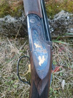 Il sistema di scatto è monogrillo selettivo, ma su richiesta disponibile la versione più classica bigrillo. L’estrazione dei bossoli è automatica e selettiva. I legni del calcio in configurazione principe di Galles e dell’astina a becco d’oca sono in noce scelto e finiti a olio, ben abbinati alla finitura tartarugata della bascula. Concludiamo la nostra giornata apprezzando la bellezza di un’arma che per resistenza e classicità delle linee può occupare un posto di riguardo in rastrelliera per numerose stagioni di caccia.