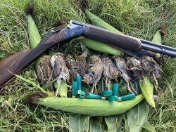 dieci fucilate sotto ferma, dieci quaglie prese, in range di tiro fra i 15 e i 25 metri. Nessuna sciupata dalla fucilata, perfettamente abbattute anche quelle meno d’appresso. Raccolte “solo” nove perché le condizioni ambientali non hanno permesso ai cani il reperimento.