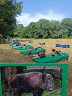 I bersagli posti a diverse distanze prevedono altrettante tipologie di tiro, le più frequenti in azione di caccia; in piedi da appoggio, oppure in posizione supina. I partecipanti si alternano sparando con le proprie armi oppure con quelle messe a disposizione dall’organizzazione per chi volesse provare le sensazioni al tiro con carabine Blaser e calciature GRS. Noi siamo fra questi e decidiamo di partecipare alla competizione ma anche di provare il tiro in ginocchio su bersagli metallici posti a maggiore distanza rispetto agli altri, dei gong oltre i 200 metri.