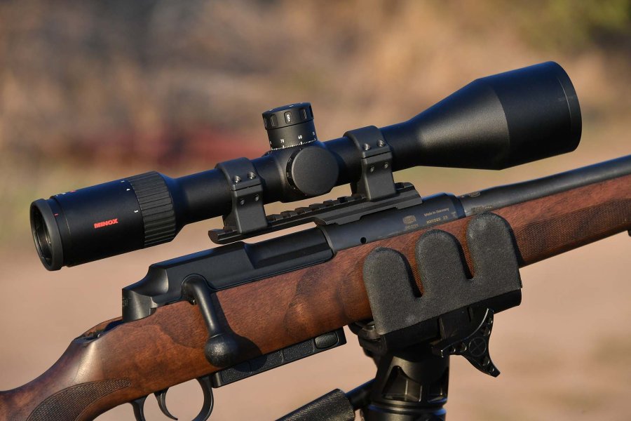 Ho provato la M25 configurata con un cannocchiale da caccia Minox RS4 3-12x56 a ingrandimento variabile con torrette BDC (Bullet Drop Compensator), una scelta di ottica molto valida per questa arma; il reticolo è un German 4 sul secondo piano focale con un punto rosso luminoso al centro, disponibile sul mercato a meno di 1.000 euro, un prezzo eccellente per le sue caratteristiche. Ovviamente, i costi per la slitta Picatinny “Single-Base-Mount” opzionale e gli anelli vanno aggiunti al totale.