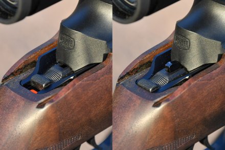 La presenza di una catena di scatto a cane interno e percussore semiflottante significa che non c’è alcun rallentamento per armare il percussore nello spingere il colpo in camera; è quasi come se l’otturatore si chiudesse da solo nell’azione. Sono sinceramente impressionato. Il grilletto è morbido, senza filature, con ottimo feedback e sgancio a rottura di cristallo. Il cursore della sicura, posto posteriormente sulla coda dell’azione dietro l’otturatore, è molto silenzioso e ha solo due posizioni ma dispone di un piccolo pulsante che si solleva per consentire l’apertura dell’otturatore e l’estrazione del colpo dalla camera anche con la sicura inserita. Mauser chiama questa funzione di sicurezza “tip-to-open”.
