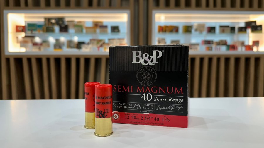 Nel segmento del calibro 12, la novità principale è rappresentata dalla Semimagnum 40 Short Range. La particolarità di questa cartuccia risiede nel bilanciamento tra l'elevata grammatura (40 grammi) e la velocità di apertura della rosata.