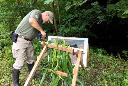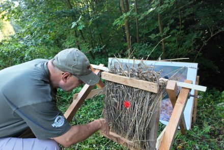 Le riprese si sono svolte in un'area di tiro protetta con una solida trappola per proiettili. Come ostacoli sono stati utilizzati supporti vegetali realistici, fissati in telai di legno. Come ostacoli sono stati utilizzati: steli di grano, mais, rami di abete rosso e una siepe di prugnolo. Obiettivo: verificare l'eventuale differenza di comportamento dei proiettili contenenti piombo rispetto a quelli senza piombo.