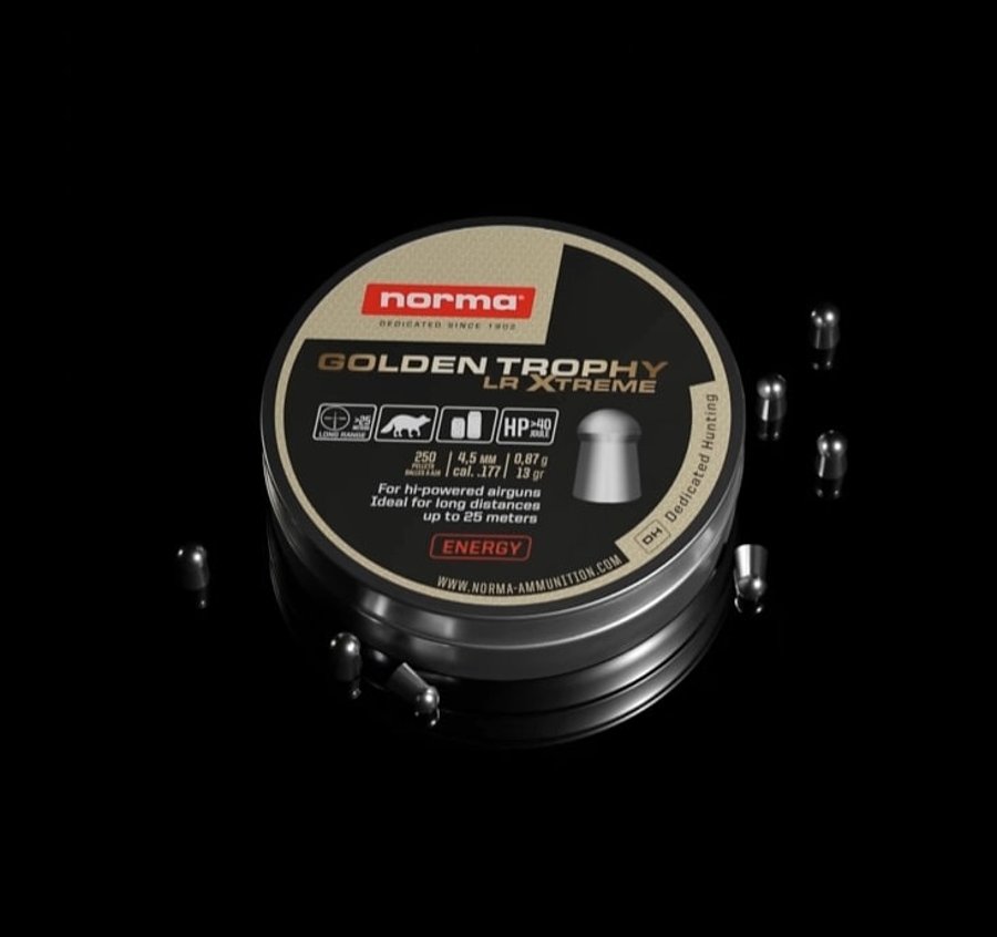 Questo lo rende ideale per il controllo dei nocivi e il plinking a lunghe distanze. Chiaramente queste prestazioni richiedono l'uso di una carabina ad aria compressa di qualità con una potenza di 40 joule e oltre. I nuovi pallini Norma Golden Trophy LR Xtreme saranno disponibili con un peso del proiettile di 0,87 grammi in calibro .177/4,5 mm e 1,65 grammi in calibro .22/5,5 mm prima della fine del primo trimestre del 2022.