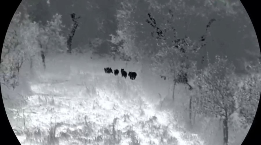 Non veniamo neanche sfiorati dalla tentazione di provare il tiro viste le dimensioni e l'età degli animali, ma ci limitiamo ad una piacevole osservazione dei loro comportamenti che, ci tengo a ribadirlo, per un cacciatore è parte fondamentale del piacere stesso della caccia. Trovare, osservare, avvicinare i selvatici è emozione allo stato puro, è mistero che si svela, l'immaginazione che prende forma nella realtà mostrandoti i selvatici che tanto aspetti, senza essere visto. Attraverso l'ottica e il telemetro integrato vediamo anche gli spostamenti degli animali che non si allontanano mai più di 80/90 metri da noi, arrivando in alcuni momenti fino ai 20/30 metri. Ci saranno altre occasioni per aggiungere anche l'adrenalina del colpo e serate come questa non lasciano di certo annoiati o delusi nell'attesa. Intorno alle 21:30 decidiamo di ritirarci per darci e per darvi appuntamento alla prossima uscita, intanto già le immagini che abbiamo realizzato potranno darvi prova della qualità degli strumenti Nocpix e dell'ottica Ace S60R, semplice, efficace, non troppo pesante sull'arma e intuitiva nello zoom che permette di avere sempre nel mirino in modo dettagliato e ben illuminato la situazione di caccia che si sta vivendo.