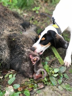 La nostra squadra ha cominciato con un buon piglio, i segugi sono andati ancora una volta al di là delle aspettative, le seguite sembrano essere rimaste ancorate saldamente alla fine della stagione precedente. Sentiamo spingere con veemenza i cinghiali dalle 9 fino al pomeriggio inoltrato, senza pause, senza tentennamenti, un segnale davvero importante. In molti presentano in muta i giovanissimi, soggetti agli esordi che richiedono attenzioni particolari, molti sono segugi di pochi mesi che hanno tuttavia avuto una preparazione solida e fatto training sulle caratteristiche principali della braccata. Abbiate sempre un occhio sul cinghiale e uno sui giovani cani, le loro reazioni, il movimento delle orecchie, il modo in cui portano la coda, in cui si interessano o sfuggono o ignorano la confusione della seguita, sono tutti segnali che vi lasciano intuire il loro grado di preparazione e predisposizione. Abbiate la giusta sensibilità di instradarli con pazienza, senza spingerli immediatamente dentro la bagarre, il cane, pur di giovane età, sa perfettamente quando arriva il suo momento, a noi sta solo il compito di assecondare la sua volontà.