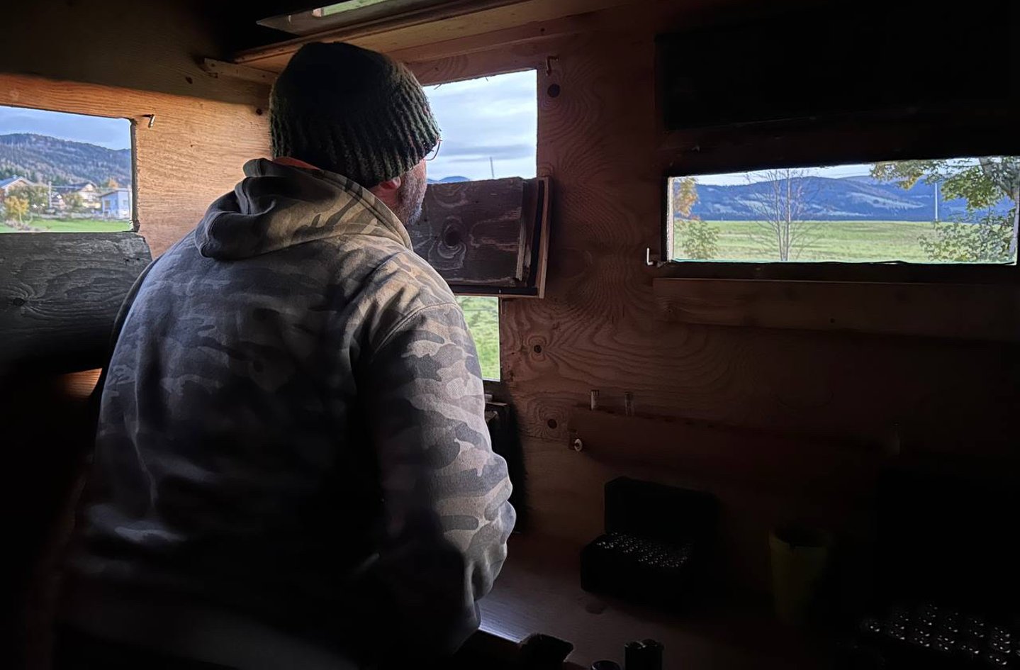 L'alba che sopraggiunge nel frattempo è limpida e promettente, la sua luce calda inizia a dare forma ai boschi e i prati che ci circondano. I richiami diffondono i loro canti saturando l'atmosfera di aspettative mentre Maurizio visibilmente emozionato prepara il fuoco della stufa che in un attimo riscalda il capanno e carica i fucili. Sono i tradizionali sovrapposti combinati di piccolo calibro .410 e calibro 20 mentre noto che le cartucce pronte all'uso sono le Baschieri & Pellagri Low Noise, cartucce silenziate con carica ridotta, dedicate appositamente a questa tipologia di caccia. Con una dose ridotta e una velocità minore il rumore dello sparo è molto contenuto e non disturba sia i selvatici che i richiami, assicurando nei tiri alle brevi distanze davanti all'appostamento degli abbattimenti immediati e sicuri fino ai 20 metri. I primi ad arrivare confondendosi con i colori del prato sono i tordi bottacci che si avvicinano al tunnel in cui i richiami di Maurizio si muovono liberamente destando curiosità. Arrivano poi i merli, più diffidenti, e per questo sempre ben coperti dai rami del vecchio acero, ancora molto ricco di foglie. La calma intorno all'appostamento è totale e soltanto qualche fucilata, fra l'altro silenziosa di Maurizio interrompe per qualche attimo la quiete del primo mattino. Sono sempre così i luoghi in cui sorgono gli appostamenti dei cacciatori, curati in ogni dettaglio, mantenuti con metodo in un ordine impossibile da trovare altrove. L'erba tagliata del prato consente ai selvatici del luogo di trovare pastura e al cacciatore di recuperare i tordi. Una lepre infatti passeggia indisturbata intorno ai richiami prima di prendere la via del suo covo alle prime luci dell'alba.