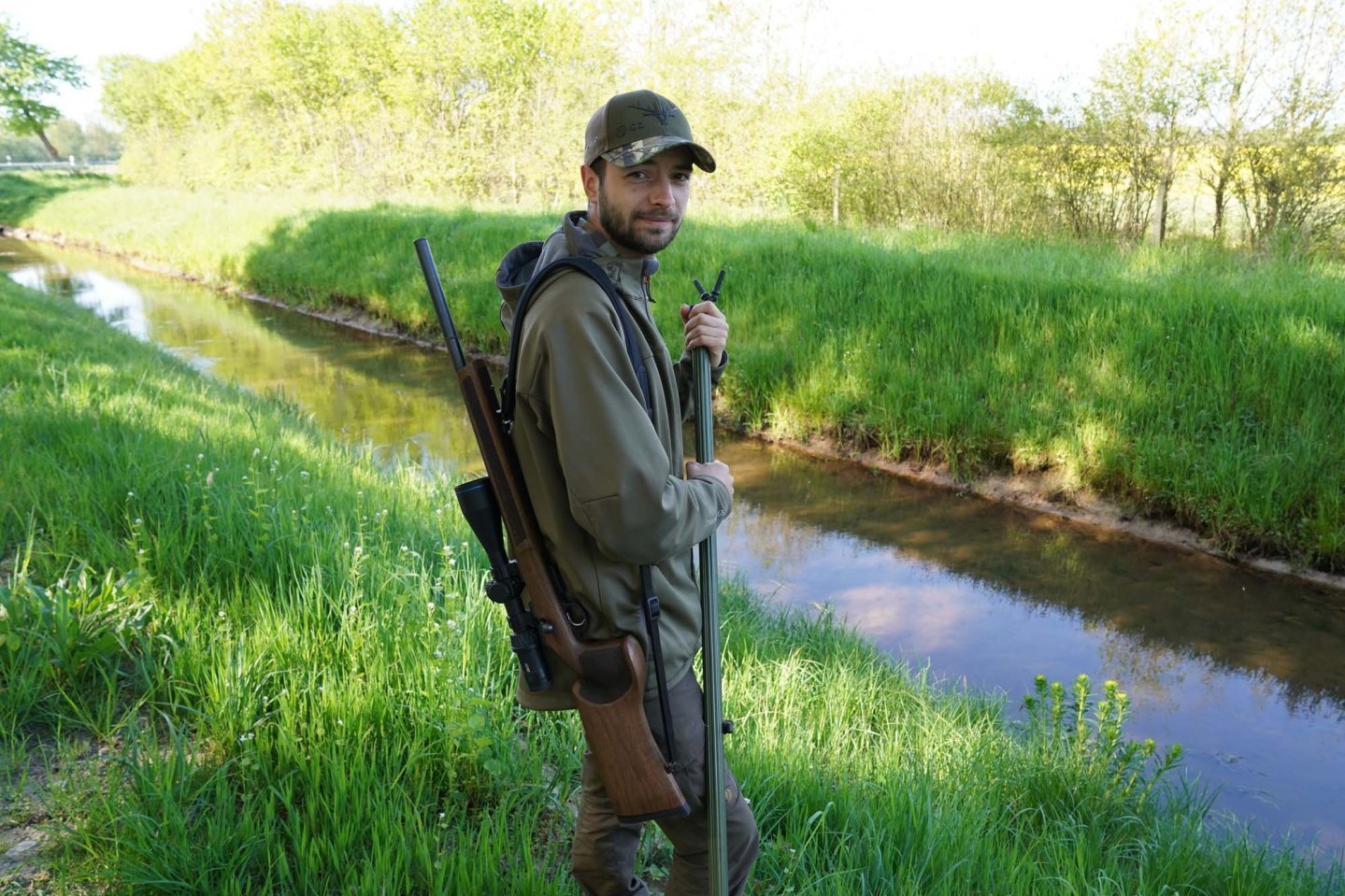 Il cacciatore professionista Xaver Werning porta sul terreno di caccia due carabine CZ, una in calibro .17 HMR e l’altra, con calciatura di tipo thumbhole in calibro .223 Remington con attacco per ottica EAW inclinabile per rotaia da 16 mm, che utilizza su caprioli e predatori.