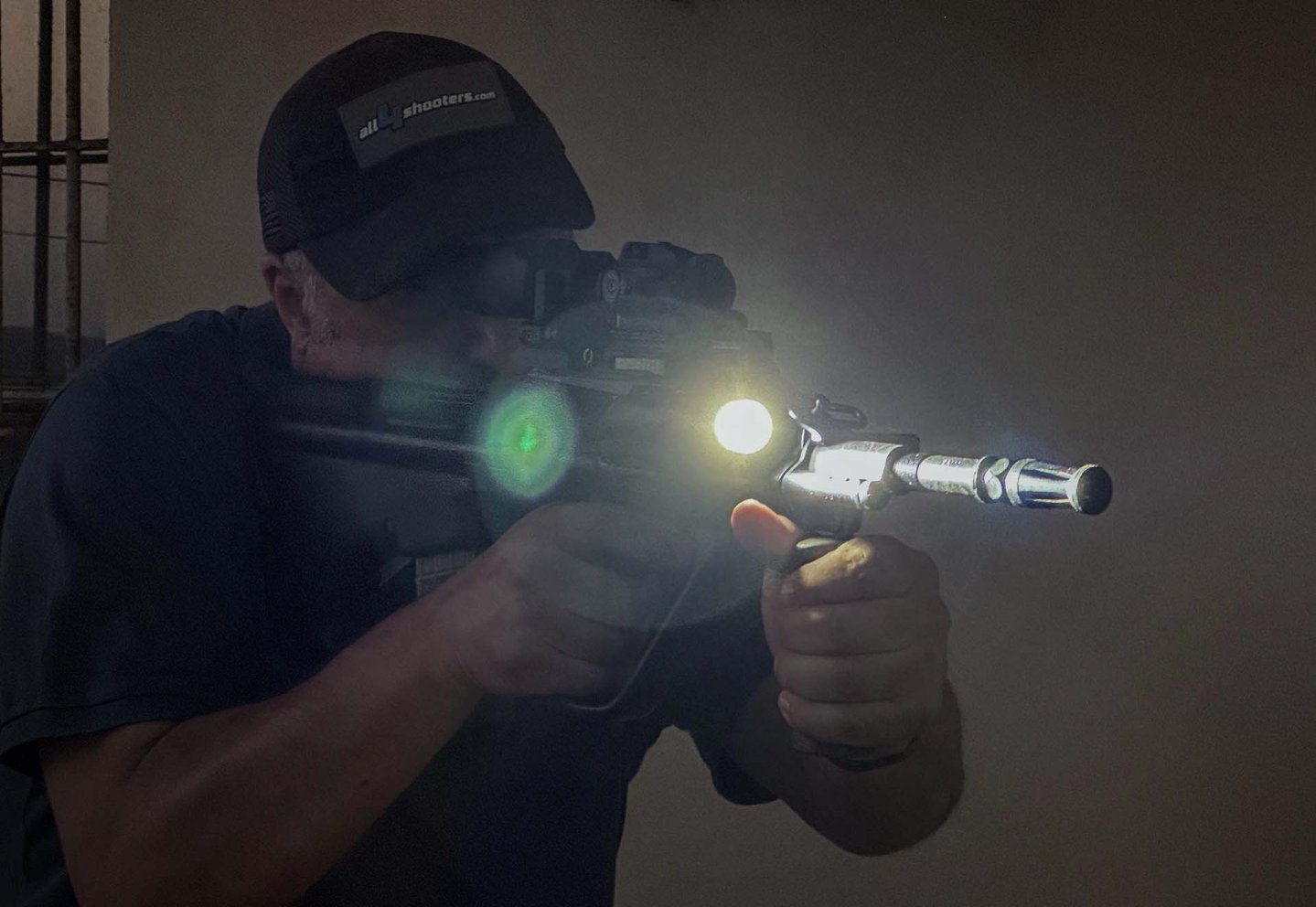 L’ho provata con un visore notturno ad intensificazione e uno digitale, ottenendo eccellenti risultati: il fascio IR non è molto concentrato e quindi non ha una portata molto grande, ma illumina con un ampio angolo rispetto al tiratore dando una grande consapevolezza di quanto ci circonda; direi che la portata massima si attesta sui 50-80 metri, ottimi considerando che gli NVD provati sono tutti con ingrandimento unitario. In ambito MOUT, CQB e urbano con NVD è eccellente. In luce bianca, ancora una volta il fascio è un poco diffuso, con una grande uniformità e uno spot centrale definito ma non accecante rispetto all’alone, in grado di aiutare ancora una volta la visione perimetrale.