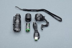 Sulla testa rotante della lampada, dal contorno antiscivolo, si trovano quattro posizioni chiaramente contrassegnate: "Lock" (nessuna emissione di luce), "Red" (si attiva il LED rosso per la luce IR/rossa), "Duty" (si attivano i due LED a luce bianca) e "Tac" (mezza pressione sull'interruttore di coda per la modalità alta a luce bianca momentanea; pressione completa per la modalità stroboscopica momentanea). Dopo aver impostato l'anello della testa su "Red" o "Duty", è possibile selezionare tre modalità di intensità luminosa - "High", "Medium" e "Low" - utilizzando l' interruttore di coda. In luce rossa, l'intensità luminosa è di 150, 30 e 3 lumen, mentre in modalità "Duty" è di 1.300, 230 e 30 lumen. I tempi di funzionamento della batteria ricaricabile 16340 con porta USB-C (o in alternativa CR123A) sono di un'ora, 2,15 ore e 20 ore nelle modalità a luce bianca, e di 3,5 ore, 5,5 ore e 50 ore nelle modalità a luce rossa.