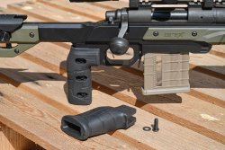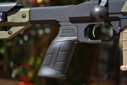 Per un puro caso non ho dovuto modificare in alcun modo ne poggia guancia né lunghezza del calcio, mentre per una presa ottimale ho preferito montare l’impugnatura verticale dritta regolabile di MDT che indubbiamente offre un miglior “feeling” con lo scatto.