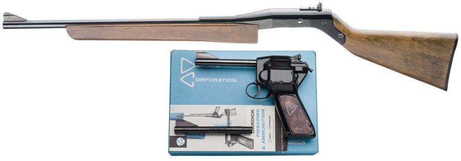 Il lotto 2605 è un esempio di come fino agli anni Sessanta del secolo scorso si cercò di migliorare il principio di funzionamento dei revolver, in questo caso introducendo qualche complicazione. Il revolver Dardick fu prodotto negli USA dal 1954 al 1962 e prende il nome dal suo progettista David Dardick. La caratteristica principale di questo ibrido tra una pistola e un revolver è l’alimentazione che avveniva con munizioni, chiamate “Tround” che erano di fatto delle normali cartucce calibro .38 Special o .22 Long Rifle avvolte da un profilato in policarbonato dalla sezione triangolare. Le cartucce erano contenute nell’impugnatura e grazie a un sistema di alimentazione ruotante venivano presentate alla culatta; dopo lo sparo il bossolo spento veniva espulso dalla finestra laterale. Pensata come arma da sopravvivenza e per le forze dell’ordine, la pistola Dardick poteva essere equipaggiata con una conversione che la trasformava in una carabina con canna lunga 20 pollici, fu un fiasco proprio perché usava munizioni proprietarie, incompatibili con qualsiasi altra arma. Questa stranezza è in buone condizioni ed è venduta nella sua scatola originale completa di conversione a carabina e libretto di istruzioni a un prezzo di partenza di € 1.500.