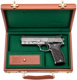 Passiamo ora alle giornate dell'8 e del 9 maggio, quando toccherà alle armi da fuoco storiche e moderne: con il lotto d'asta 7611, viene offerto un eccezionale esempio di fabbricazione di armi: si tratta di una pistola semiautomatica Korriphila HSP 701 nella rara versione full damascus, ovvero con canna e carrello in damasco, con canna da 5 pollici. Questa pistola, prodotta in pochissimi esemplari da Intertex Maschinenbau GmbH, è unica nel suo genere e combina precisione e alta qualità di lavorazione. Lo dimostrano le guancette in ebano con inserti in pelle di razza e la raffinata tiratura delle superfici che evidenzia la trama del damasco. La pistola viene venduta nelle sua valigetta in pelle con i documenti originali. Il prezzo di partenza è di 19.000 euro.