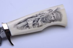 Scrimshaw: tecnica di incisione su osso o avorio dove i tratti dell’incisione vengono successivamente riempiti con pigmenti per evidenziare i dettagli. Si tratta di una tecnica sviluppata durante l'Ottocento dai marinai imbarcati sulle baleniere, che ingannavano le interminabili giornate di navigazione incidendo i grossi denti dei capodogli. I solchi sull'avorio venivano poi riempiti e anneriti con la saliva scurita dal tabacco. Oggi si usano materiali più tecnici, ma il procedimento alla base rimane lo stesso. Normalmente la tecnica scrimshaw prevede un disegno in nero su fondo bianco, ma esistono anche scrimshaw a più colori o con incisione bianca su materiale nero, come il corno di bufalo.