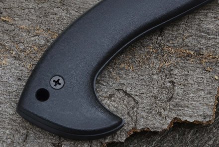 L’impugnatura è rivestita per tutta la lunghezza da due lunghi pannelli in Nylon rinforzato con fibra di vetro, dalla superficie appena percettibilmente corrugata. Come vedremo in seguito, la presa del manico dipende molto di più dal suo disegno che dall’asperità della sua superficie. I pannelli sono fissati al metallo da tre coppie di viti con testa a croce dall’aspetto un po’ ordinario, ma questo non ha alcuna conseguenza pratica, per cui non lo consideriamo un difetto.