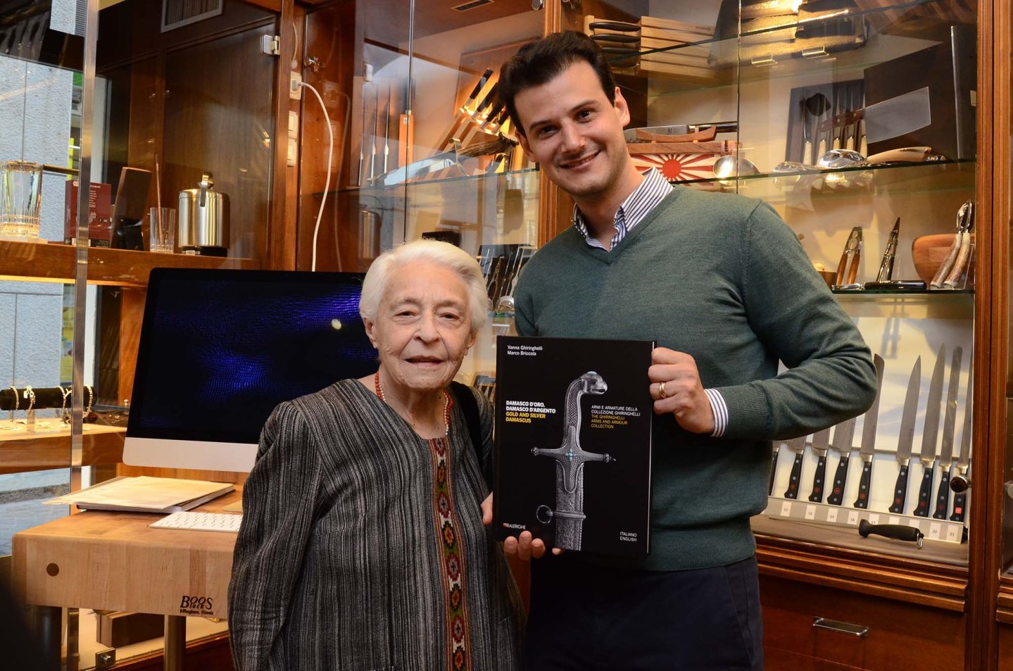 Le conferenze di presentazione dei libri sono amate e temute allo stesso modo da chi per lavoro o per passione le frequenta: possono essere di una noia mortale, possono svelare al mondo che il brillante scrittore che conosciamo solo attraverso i suoi scritti una volta incontrato di persona è arrogante o tedioso. Poi ci sono gli eventi come quello al quale siamo stati invitati a conoscere il nuovo libro di Vanna Ghiringhelli e Marco Briccola: tutti i pezzi si sono combinati alla perfezione. Partiamo dal luogo, ovvero il negozio dei fratelli Lorenzi in corso di Porta Romana 1, nel centro di Milano, che non solo è un vero e proprio paradiso per gli appassionati di coltelli e oggettistica di alto livello, ma che ormai da anni su iniziativa dei proprietari si propone anche come sede per la presentazione di eventi culturali e artistici. Qui un folto gruppo di appassionati e sostenitori si è dato appuntamento giovedì 30 marzo per la presentazione al pubblico di “Damasco d’oro, damasco d’argento” un volume come se ne stampavano ai bei tempi, riccamente illustrato con fotografie di altissima qualità accompagnate da testi dello stesso livello. Il libro, che nasce durante il periodo del lockdown come un semplice inventario della straordinaria collezione di Vanna Ghiringhelli, si è progressivamente trasformato in un’antologia riccamente illustrata di armi e armature asiatiche, anche riprendendo e aggiornando articoli precedentemente pubblicati da Vanna su diverse riviste, e con il contributo determinante di Marco Briccola, appassionato studioso di lame asiatiche ed eccellente divulgatore.