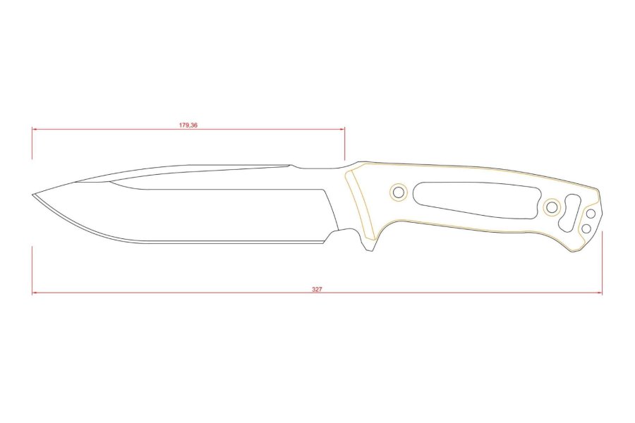 Sul dorso della stessa è invece ricavata una zona ribassata, utile per guidarla con il pollice durante i lavori di fino. Il coltello è accompagnato da un fodero in Kydex e Cordura, dotato di interfaccia MO.L.L.E.
