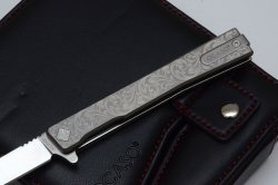 Di fatto l’unica vite visibile è quella Torx che fissa la clip, anch’essa incassata; ce n’è un’altra ma non è visibile in quanto coperta dalla clip stessa. I modelli con guancette in titanio hanno una finitura anodizzata che conferisce al metallo una risposta al tatto molto piacevole. I modelli con guancette incise con decorazione e fiorami, come quelle dei fucili da cacia più classici e raffinati, hanno una marcia in più dal punto di vista estetico ed è inevitabile immaginarli nella tasca di un gentiluomo cacciatore. In questo caso il contrasto tra le volute arrotondate e organiche del fogliame crea un piacevole contrasto ottico con le linee angolari e squadrate dell’impugnatura e l’una evidenzia l’altra a livello estetico.