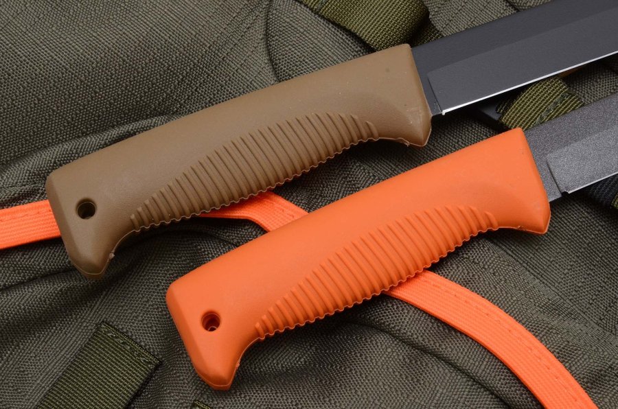 Il fodero è disponibile in tre diverse versioni, in cuoio naturale nero o marrone, in Kydex oppure in polimero con sistema di aggancio MOLLE e un sistema di ritenzione chiamato EasyLock che blocca saldamente il coltello al suo interno e ne impedisce l’uscita, anche portandolo con il manico verso il basso. Il fodero in polimero è disponibile in quattro colori, tra i quali l’arancio ad alta visibilità, mentre quelli in Kydex hanno una tavolozza di ben sette varianti, compresi tre mimetismi Multicam.