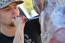 Lo avevamo previsto e glielo abbiamo lasciato più che volentieri. D’altra parte, l’idea che regalare un coltello porti sfortuna, è una superstizione che non incoraggiamo, men che meno quando si tratta di fare un regalo a chi se lo è meritato. In particolare, quello che è piaciuto al nostro accompagnatore è stata l’eccellente grippabilità dell’impugnatura, che in questa circostanza (lo potete vedere dalla foto, scelta comunque tra le meno esplicite) viene messa a dura prova dalla grande quantità di sangue che la imbratta, e l’eccellente affilatura di fabbrica. I materiali e le finiture tecnologiche consentono poi di lavare il coltello sotto il getto di un rubinetto, senza temere di rovinarlo.