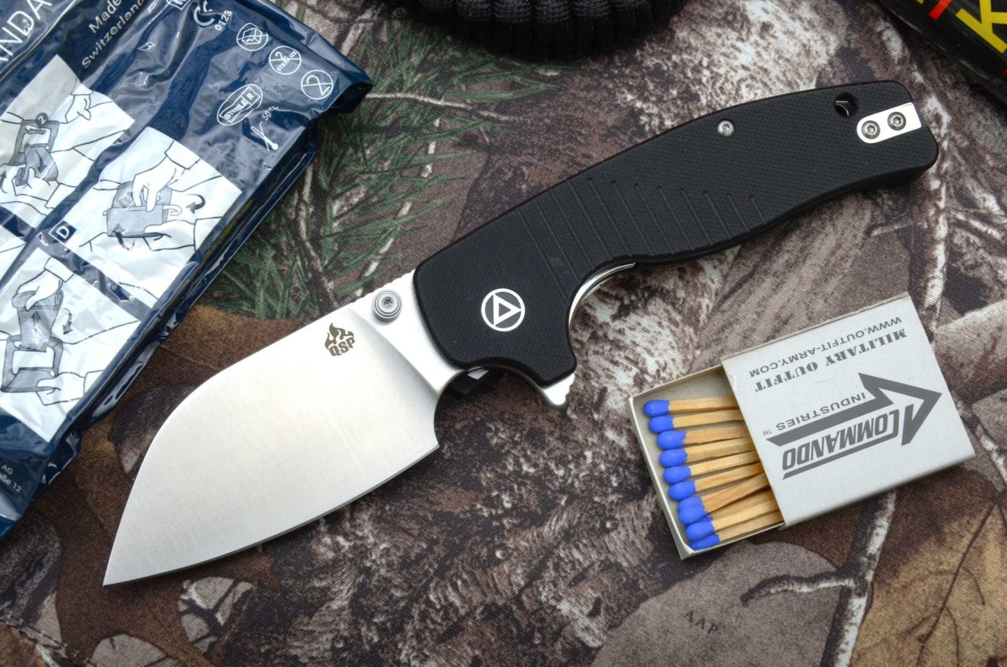 Partiamo dall’esterno, ovvero dalla confezione: il QSP Chefmaster è consegnato in una bustina di cellophane, dentro un cofanetto di cartone con fodera interna in schiuma di poliuretano sagomata per accogliere perfettamente il coltello chiuso. Ci sono poi due simpatici stickers e il certificato di garanzia a vita: si tratta di una dotazione piuttosto scarna rispetto a quelle a cui ci hanno ormai abituati altri marchi cinesi, ma pur sempre curata. Lo Chefmaser è un chiudibile con apertura della lama a flipper laterale oppure tramite piolo sulla lama e blocco liner-lock.
