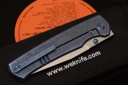 La serie Evoke, come dicevamo in apertura, è caratterizzata dalle impugnature in titanio 6AL4V dalla diversa finitura: si va dal color bronzo anticato al grigio con una sorta di striatura irregolare (tiger stripe). Il modello che vi presentiamo nelle foto è il WE21046-3 con finitura black stonewashed su fondo blu che, secondo noi, valorizza le doti estetiche del materiale. Il nostro Evoke quindi si presenta in modo molto essenziale, ma ancora da chiuso offre all’occhio dell’appassionato alcuni dettagli interessanti, come le viti Allen che sono anch’esse in titanio 6AL4V così come i perni di apertura della lama, lo spaziatore dorsale e la clip che consente il porto del coltello con la punta verso l’alto (tip up).