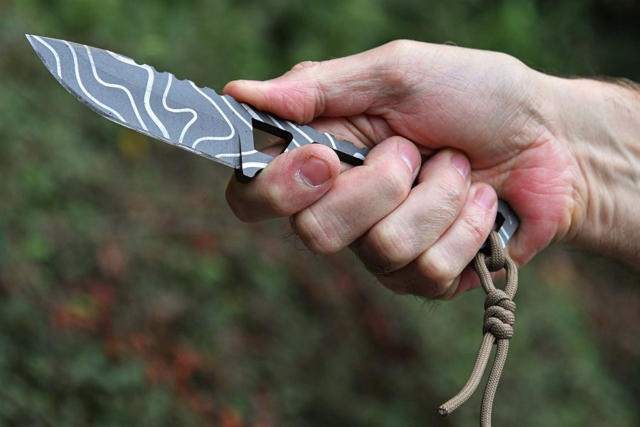 Lo Zebdos Framez è disponibile con due profili di lama: standard e Tanto e con finitura brunita OD green oppure con incisione “topografica”, come l’esemplare che ci è stato inviato per valutazione. In ogni caso l’aspetto è molto austero, e solo sul lato destro troviamo le tre rune che compongono il logo dell’azienda. Nel video Marco Zevolini spiega in modo molto chiaro il loro significato. La lama in acciaio 440 C misura 98 millimetri di lunghezza per 5 di spessore e ha una affilatura liscia eseguita alla perfezione. L’impugnatura è ottenuta semplicemente sagomando l’acciaio e praticandovi tre aperture trapezoidali; il risultato è eccellente sia a livello estetico sia ergonomico. Detto in parola povere il coltello si impugna molto bene, in particolare con i guanti, e la godronatura praticata sui suoi lati superiore e inferiore rendono la presa saldissima. Questa lavorazione si estende anche sul dorso della lama, per due terzi della lunghezza totale, e permette un appoggio saldo e sicuro del pollice per fare lavori di forza.