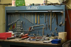 Salendo le scale entriamo in una stanza di cemento. Questo non è ancora il bunker, ma una sezione non fortemente protetta. È la sezione che si può intravvedere dal parcheggio e che ospita il sistema di areazione. Dietro una pesante porta di metallo dipinta di rosso pesante ci sono enormi tubi di aspirazione e alcuni dispositivi di filtrazione. In caso di attacco con bombe l'aria sarebbe stata filtrata attraverso questi impianti per garantire ai 200 uomini ospitati bunker un'atmosfera respirabile. Tra l'altro, cosa oggi impensabile, il bunker era stato progettato esclusivamente per l'uso da parte degli uomini. All'inizio degli anni Sessanta, infatti, non c'erano donne a svolgere mansioni di rilievo nel Ministero degli Interni. In questo modo sono stati semplicemente risparmiati i bagni e le docce, le toilette e i dormitori differenziati. Attraverso una porta a tenuta stagna entriamo nel bunker di destra. Le sue pareti di cemento hanno uno spessore di 3 metri e l'intero edificio è flottante su uno strato di ghiaia, in modo da poter essere spostato da un'onda d’urto fino a cinque centimetri senza subire danni.