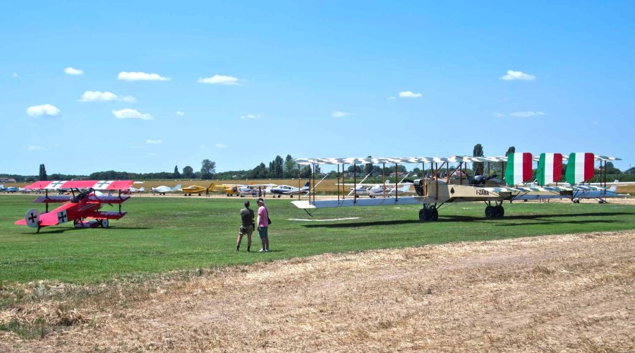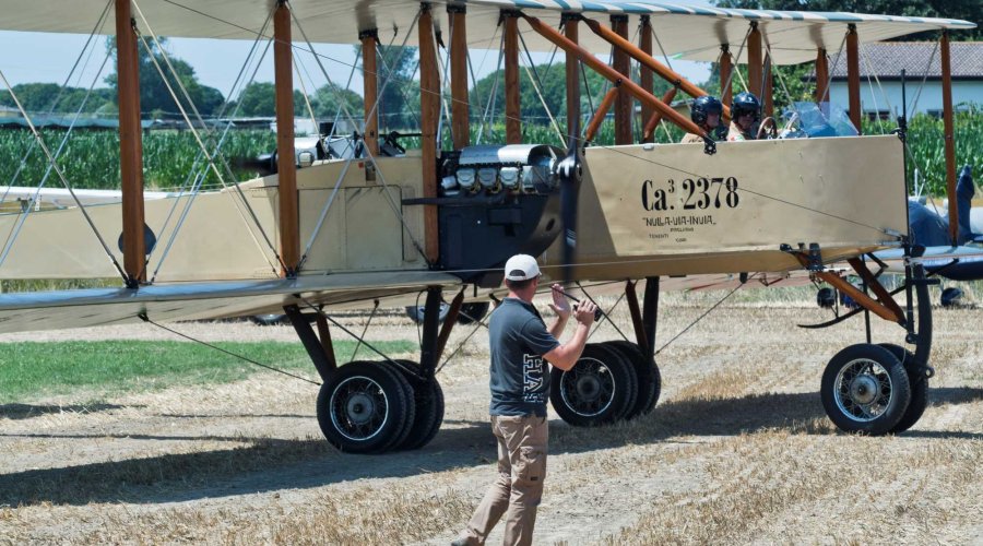 Nel corso del Fly Party 2025 gli appassionati hanno potuto ammirare le evoluzioni di straordinarie macchine volanti come il biplano da bombardamento della Prima guerra mondiale Caproni CA3, mirabilmente restaurato dalla della Jonathan Collection, o il triplano Fokker Dr.I l'unico esemplare volante presente in Italia.