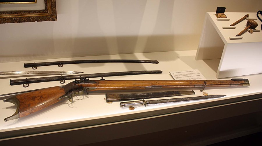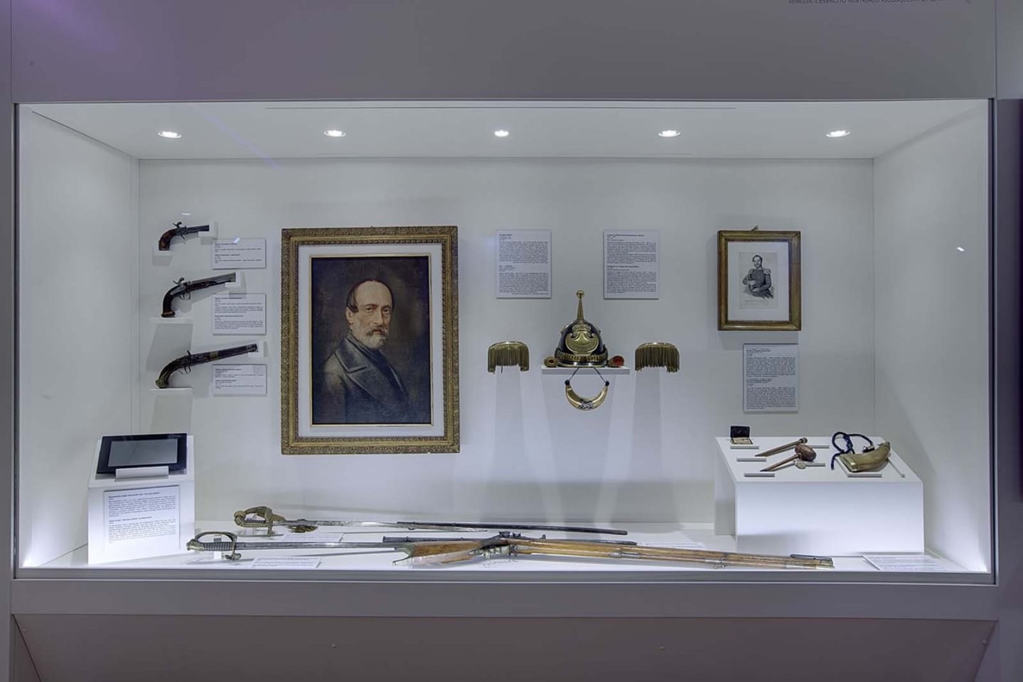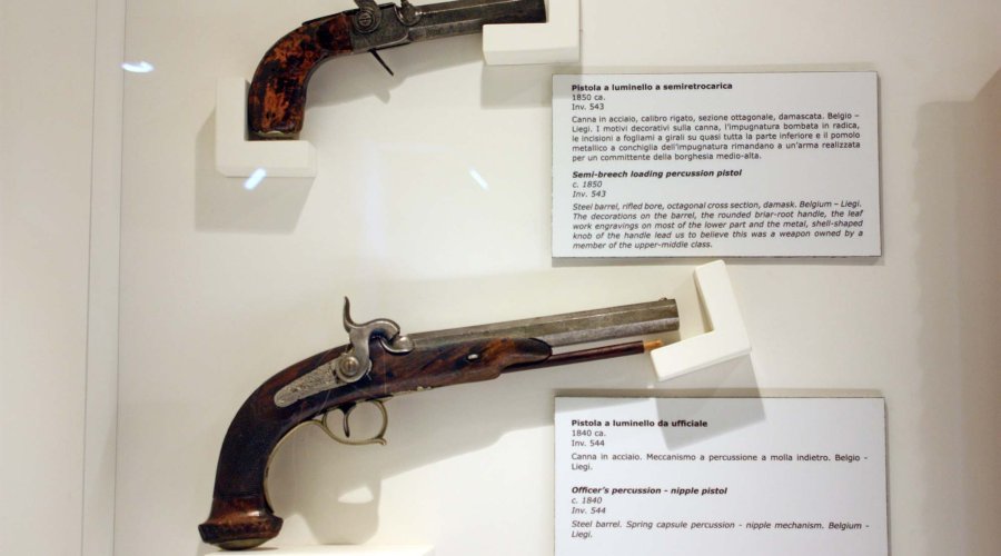 La forza del Mu.R. sta anche nella Linea del Tempo ossia l’idea di allestire uno spazio espositivo che intreccia le imprese dei Padri della Patria con gli entusiasmi e le passioni della gente comune; perché tutto contribuì alla realizzazione del sogno risorgimentale. Particolare attenzione è poi riservata ai patrioti e patriote lucchesi, come Tito Strocchi, garibaldino e fervente mazziniano, Antonio Mordini avvocato e politico di idee democratiche-moderate che fu un fedelissimo di Giuseppe Garibaldi, Giuseppe Giovannetti militare di carriera comandante del contingente toscano nella Prima Guerra d’Indipendenza Italiana, Giovanni Antonelli l’unico lucchese nei Mille, Luisa Amalia Paladini, scrittrice e poetessa, una delle tante “Tessitrici” del Risorgimento, Cleobulina Cotenna fervente liberale e soccorritrice dei patrioti perseguitati. Venendo all’aspetto più meramente oplologico dobbiamo dire che il Mu.R. anche se piccolo è in grado di offrire dei pezzi di grande interesse storico quali due pistole a luminello della metà del XIX secolo di cui una a semiretrocarica, la sciabola da ufficiale di fanteria modello 1855 appartenuta a Tito Strocchi, due sciabole da ufficiale dei volontari garibaldini modello 1855, una pistola a pietra focaia alla moderna, una sciabola da ufficiale della Marina Austriaca, la sciabola del generale Albertini. Modello d’ordinanza dell’Esercito delle due Sicilie eccetera… insomma pistole e lame che hanno fatto la storia d’Italia.