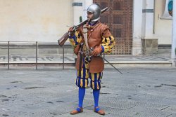 Certamente con l’archibugio, la prima vera arma da fuoco portatile della storia, l’arte di fare la guerra fece un deciso passo in avanti rispetto ai precedenti e più primitivi schioppi. Le formazioni di archibugieri opportunamente protette da reparti di picchieri, tra i quali si ponevano al centro, erano in grado di portarsi in posizione di tiro utile (50 metri) contro le schiere di cavalleria pesante e di fanteria nemiche bersagliandole. Questa tattica di combattimento della quale i Lanzichenecchi e gli uomini del Tercio spagnolo erano veri e propri maestri, fu mirabilmente applicata, proprio contro gli imperiali, anche dai reparti di tiratori, provenienti dalla Montagna pistoiese, dell’esercito della Repubblica Fiorentina al comando del condottiero Francesco Ferrucci, quando in quel di Gavinana nel 1530, circondati nella cittadina dell’Appenino Pistoiese, ebbero modo di respingere gli attacchi della cavalleria nemica con un fitto fuoco di sbarramento salvando la retroguardia fiorentina che stava cercando di riparare entro le mura dell’abitato.