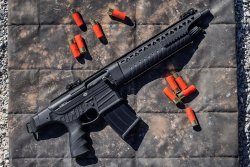 Questo aggressivo shotgun monta un set di mire di tipo pieghevole sulla lunga slitta Picatinny che corre lungo tutta la sua parte superiore e sulla quale possono essere montati in co-witness anche altri dispositivi a punto rosso. Altre slitte di diversa lunghezza sono presenti sui lati e sulla parte inferiore dell’astina in polimero. La carcassa è invece in alluminio 7075 e il peso dell’arma scarica è di circa 3 Kg.
