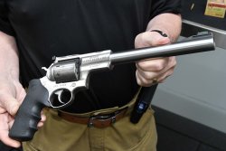 Le prestazioni balistiche di questa piccola cartuccia restano comunque interessanti: il moderno caricamento Hornady in versione V-Max spinge una palla da 35 grani alla velocità iniziale di 950 m/sec e un’energia di 1012 joule, ovvero una bella sberla. La nuova versione della Ruger Super Redhawk è dedicata in particolare alla caccia di nocivi (Varmint) ma anche al tiro sportivo a lunga distanza. Monta una canna da 9,5 pollici, pari a 225 mm, ha un tamburo a tripla chiusura dalla notevole capacità di 8 colpi e ha la tacca di mira regolabile micrometricamente e il mirino di tipo Hi-Wiz con inserto in fibra ottica verde. Gli organi di mira sono facilmente intercambiabili mentre sul robustissimo telaio in acciaio inox può essere applicato un attacco per l’ottica. Lo scatto è ad azione mista (singola/doppia) con meccanismo di sicurezza transfer bar contro gli spari accidentali. Il peso della Ruger Super Redhawk in calibro .22 Hornet è di 1870 grammi, mentre il prezzo, negli USA è di 1499 dollari.