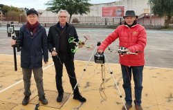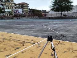 Non si poteva di certo girare un video in pieno centro cittadino esibendo un tale oggetto troppo somigliante ad un bazooka, o simili, senza allarmare le persone presenti nei dintorni. L’antenna del video è collegata al radiocomando (senza amplificatore di potenza) ma non trasmette nulla per non inviare (molto lontano) il segnale radio rischiando così di combinare guai. Infine, l’ancoraggio a terra del drone per mezzo di una cordicella di soli cinque metri ha permesso il volo in tutta sicurezza.