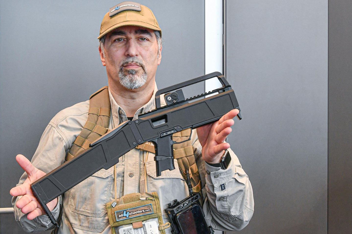 Si tratta di un concetto che parte da lontano, primi anni ‘80 per l’esattezza, con la UC-9/DEB M21, una pistola mitragliatrice pieghevole coeva della ARES FMG, che molti puristi indicano come reale antenato – ma ci sarebbe una analoga pistola mitragliatrice (forse copiata) russa, la PP-90… in ogni caso, Magpul ha pensato di ripescare e modernizzare notevolmente il concetto, trasformandolo da arma a conversione, presentata il 2008 allo Shot Show e chiamata FMG-9, basata sul sistema della Glock 17. Anche qui, prototipi se ne sono visti girare, ma nessun prodotto commerciale. ZEV si è fatta avanti un paio di anni fa assieme a Magpul, e forse la FDC-9 vedrà la luce quest’anno. Ma nel frattempo, B&T si è portata avanti e ha presentato la sua versione, in metallo anziché il tecnopolimero della Magpul; il prezzo non è stato ancora comunicato ma non sarà affatto leggero, vista la storia e il blasone del marchio svizzero.