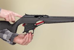 La Winchester Wildcat ha un’azione monolitica che, dopo aver verificato che non ci siano colpi in camera, può essere sfilata facilmente attraverso la parte inferiore del calcio, semplicemente premendo un pulsante situato nella parte posteriore dell’azione. Il gruppo di scatto e quello di otturazione, che formano un tutt’uno, possono essere quindi puliti e lubrificati con estrema facilità, inoltre attraverso il foro posteriore dell’azione è molto più agevole far passare uno scovolo per la pulizia della canna.