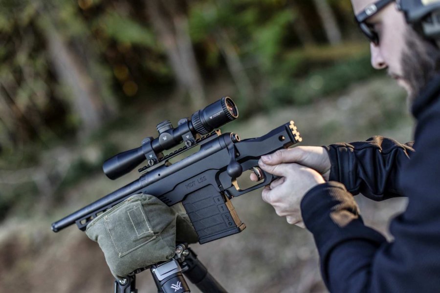 Una caratteristica distintiva è l'azione “mancina” con manetta di armamento sul lato sinistro e finestra di espulsione a destra. Questo assetto consente ai tiratori destrorsi di azionare l'otturatore con la mano sinistra senza staccare la mano dominante dall'impugnatura e l'occhio dall'ottica.