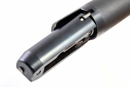 Anche il Remington ha la canna rimovibile che è tenuta in sede dal tappo del serbatoio ma l’anello integrato delle canne, è posizionato sempre alla stessa altezza. Questo sistema permette di installare il tubo di prolunga fornito come accessorio o sostituire solamente la canna con altre di varie lunghezze disponibili in catalogo.