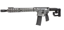 L’astina guardamano a basso profilo presenta un’interfaccia M-Lok per il montaggio di accessori e presenta nella sua parte anteriore una slitta Picatinny integrale a ore 12. Il caricatore in polimero fornito di serie con la carabina ha una capacità di 30 cartucce.