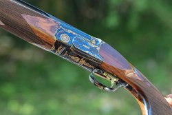 Questi accorgimenti consentono ai pallini di raggiungere velocità più elevate e ridurre l’attrito con le pareti interne della canna, a vantaggio della concentrazione delle rosate e della riduzione del rinculo. Nella versione Ascent, la bindella misura un’altezza di 10 millimetri, è ventilata e conica; rabescata superiormente e caratterizzata da una fresatura centrale che insieme al mirino intermedio consente al tiratore di verificare sempre il corretto allineamento dell’arma prima del tiro. Le bindelle laterali sono ventilate e permettono l’eventuale applicazione dei pesi previsti dal sistema DTS balancer per il corretto e personalizzato bilanciamento del sovrapposto. Il calcio dell’Invictus II viene realizzato con legni di noce scelto di grado 2,5 lucidato ad olio, è lungo 380 millimetri e prevede un nasello regolabile in altezza e deviazione e un calciolo in gomma dello spessore di 20 mm. L’astina tonda con tipico pulsante di sgancio a pompa e la pistola con impugnatura stretta prevedono zigrini a passo fine per una presa salda e un brandeggio sicuro del sovrapposto. Il feeling e la precisione del tiratore con l’Invictus II Ascent Trap sembrano immediati, ma lasciamoci guidare dalla descrizione e dalle immagini di Renato Lamera.
