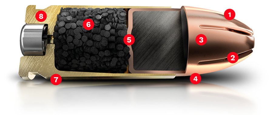 Lo spostamento all'indietro del baricentro del proiettile contribuisce a migliorare la precisione.