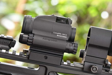 Fin dalla sua presentazione, il punto rosso CompM5b di Aimpoint ha suscitato tra gli appassionati e i tiratori un discreto interesse generale ma con opinioni abbastanza accese tra i sostenitori ed i detrattori dell’idea. I detrattori hanno subito etichettato le torrette di compensazione balistica del CompM5b come una complessità inutile, visto che il reticolo è solo un punto da 2 MOA. Ma in uno scenario professionale, in cui il CompM5b è la parte centrale di un concetto e di un sistema di puntamento dell'arma che comprende aggiuntivi ottici di ingrandimento 3x e 6x e ottiche di conversione NVD, la torretta di elevazione rappresenta un evidente vantaggio tattico, consentendo al tiratore di ingaggiare bersagli a distanze maggiori, sfruttando il punto più nitido del mirino reflex e dell'ingrandimento. Gli aggiuntivi ottici e NVD possono essere montati e sostituiti in pochi secondi con il sistema Twist Mount di Aimpoint - e nel caso degli ingranditori, usando l’anello Twist Mount, è possibile rimuoverli istantaneamente dall’asse ottico con un solo gesto della mano debole.