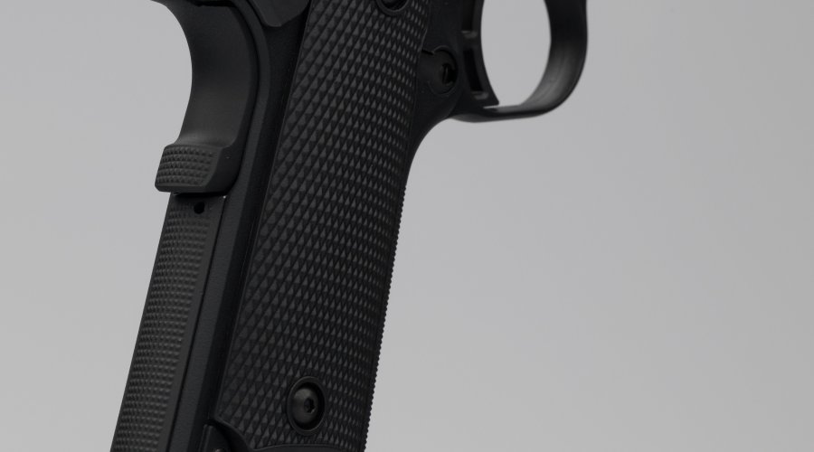 Il grilletto e il cane sono di tipo scheletrato, e la canna, rotomartellata a freddo per una lunghezza di circa 10,8 centimetri (4.¼") presenta una boccola di volata di tipo Target.